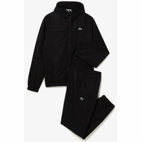 Ontdek de perfecte mix van stijl en functionaliteit met dit trainingspak van Lacoste. Dit model biedt een ongeëvenaarde balans tussen comfort en mode, ideaal voor zowel sportieve als ontspannen momenten. Gemaakt van lichtgewicht en ademend polyester, biedt het een luxe uitstraling dankzij de diamantgeweven taftzijde. De regular fit garandeert een comfortabele pasvorm, terwijl het jack met capuchon extra ademend vermogen biedt door de mesh voering. De broek met jerseyvoering zorgt voor soepel draagcomfort. De iconische opgenaaide siliconen krokodil voegt een robuuste touch toe, perfect voor heren die waarde hechten aan kwaliteit en stijl.